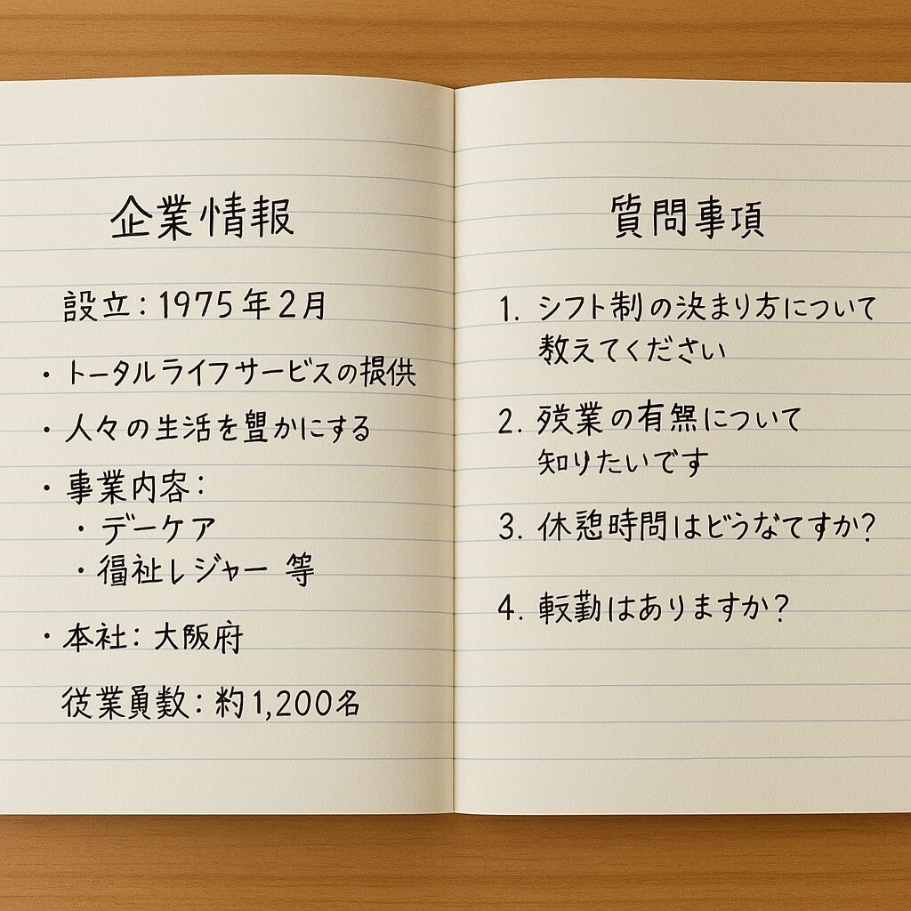 そんな時におすすめなのが、企業研究をしながら『質問ノート』を作っておくこと!